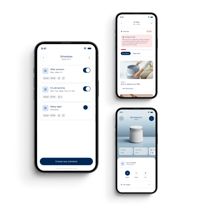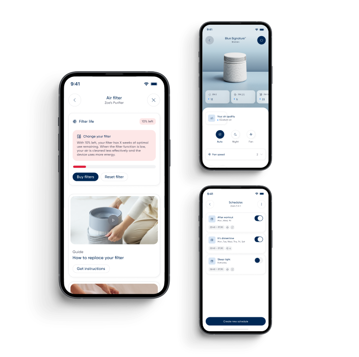 Contrôle intelligent dans l'application Blueaiir hautement notée et récemment mise à niveau